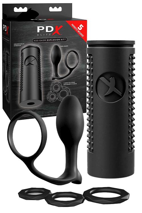 PDX Masturbator, Butt Plug & Cock Ring Set (5 Pce)