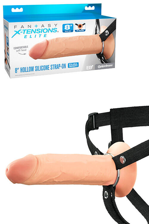 Pipedream Elite 8″ Silicone Dual Density Hollow Strap On