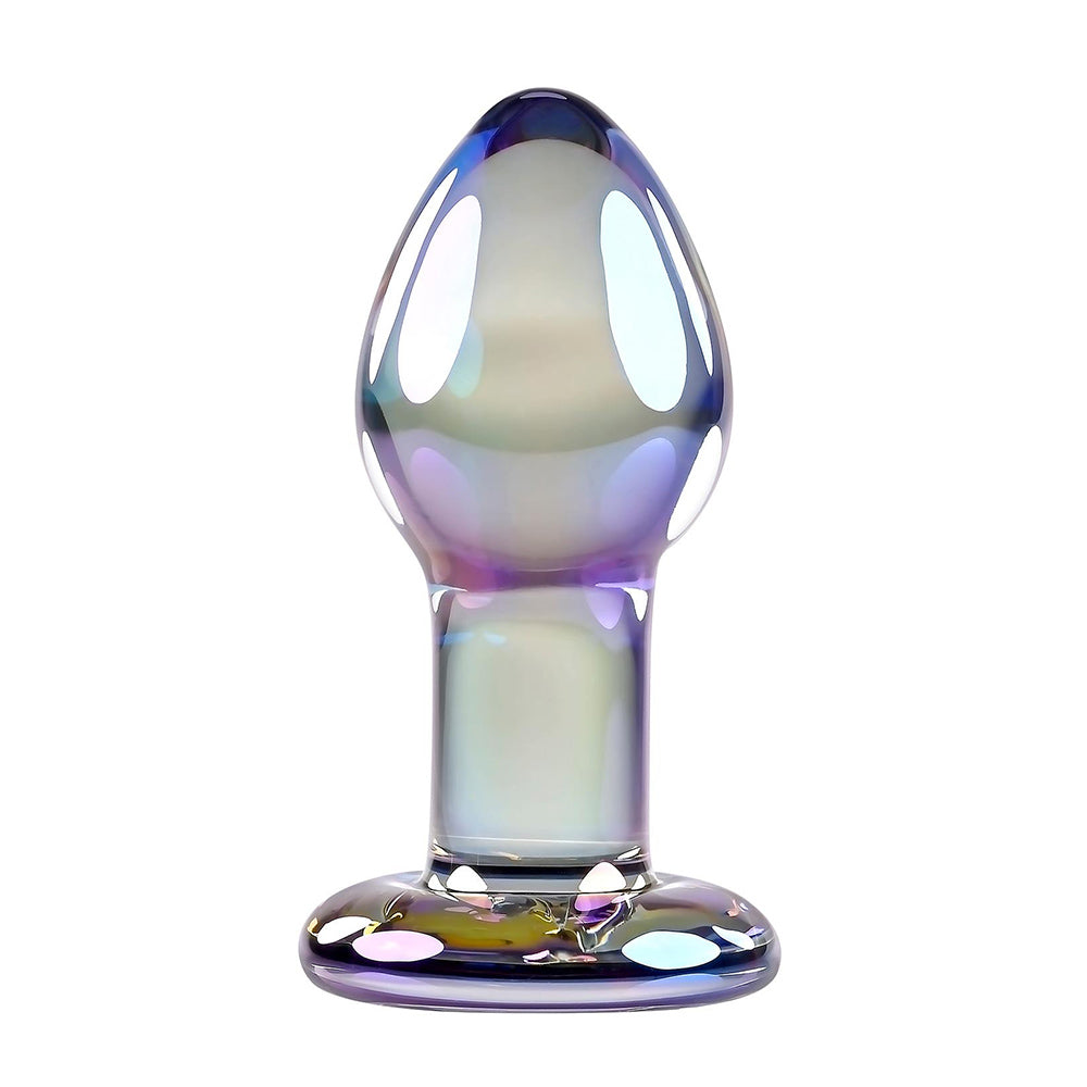 Unleash your desires with the stunning Playboy Pleasure Jewels Plug, a must-have addition to your intimate collection. Crafted from body-safe borosilicate glass, this exquisite plug features a beautiful crystal iridescent finish. Its bulbous teardrop shape offers a delightful feeling of fullness while the tapered tip ensures smooth and comfortable insertion. Perfect for temperature play, simply immerse it in warm or cool water before use to heighten your experience.