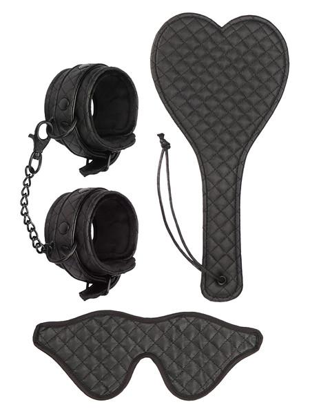 Features: Includes blindfold, paddle, and wrist cuffs; dual-sided paddle