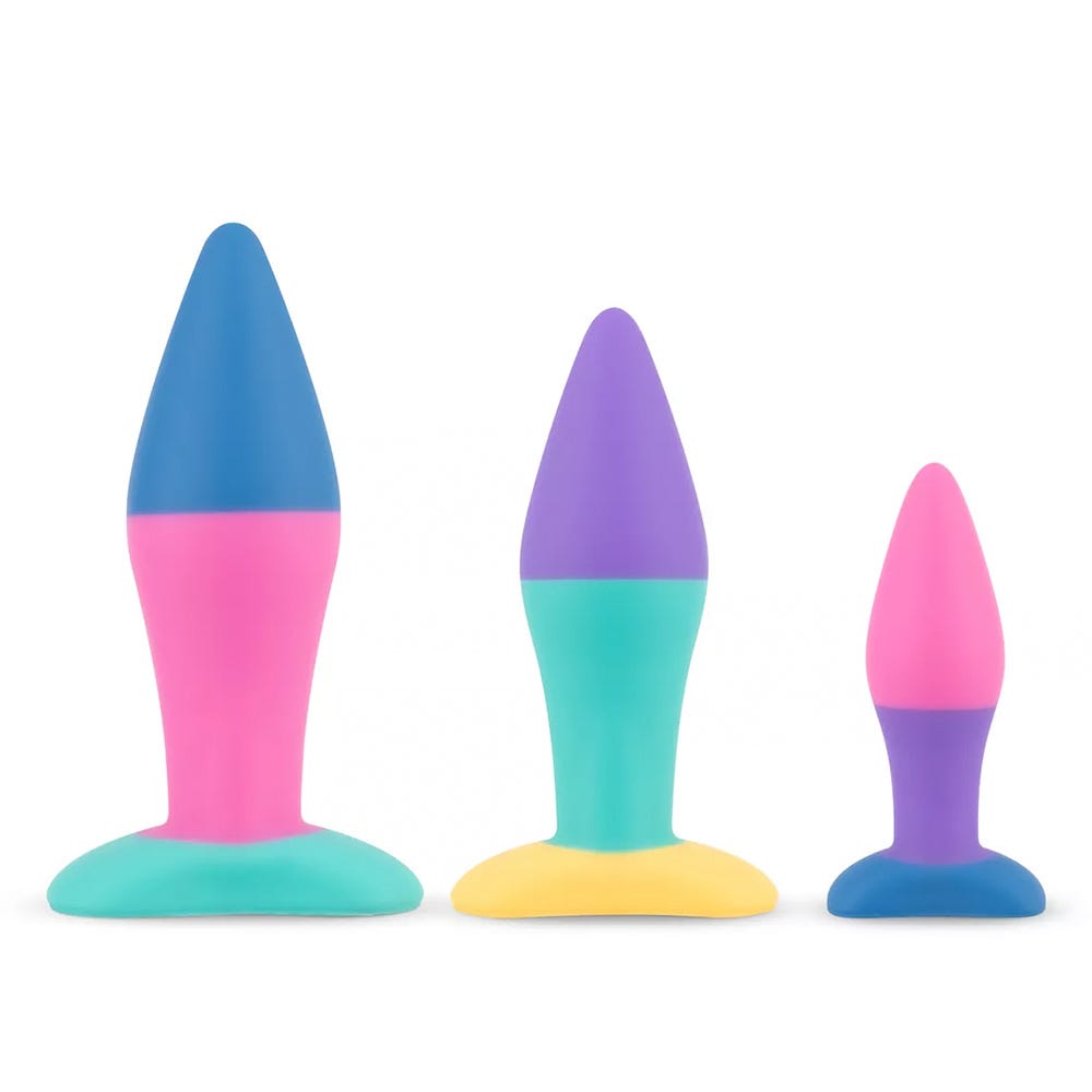 Unleash a spectrum of pleasure with the PMV20 Koda Butt Plug Set. Perfectly designed for both beginners and seasoned explorers, this set features triple tapered anal plugs that promise a delightful journey into anal bliss. Each vibrant plug adds a touch of color to your intimate moments, encouraging you to dive deeper into your desires.