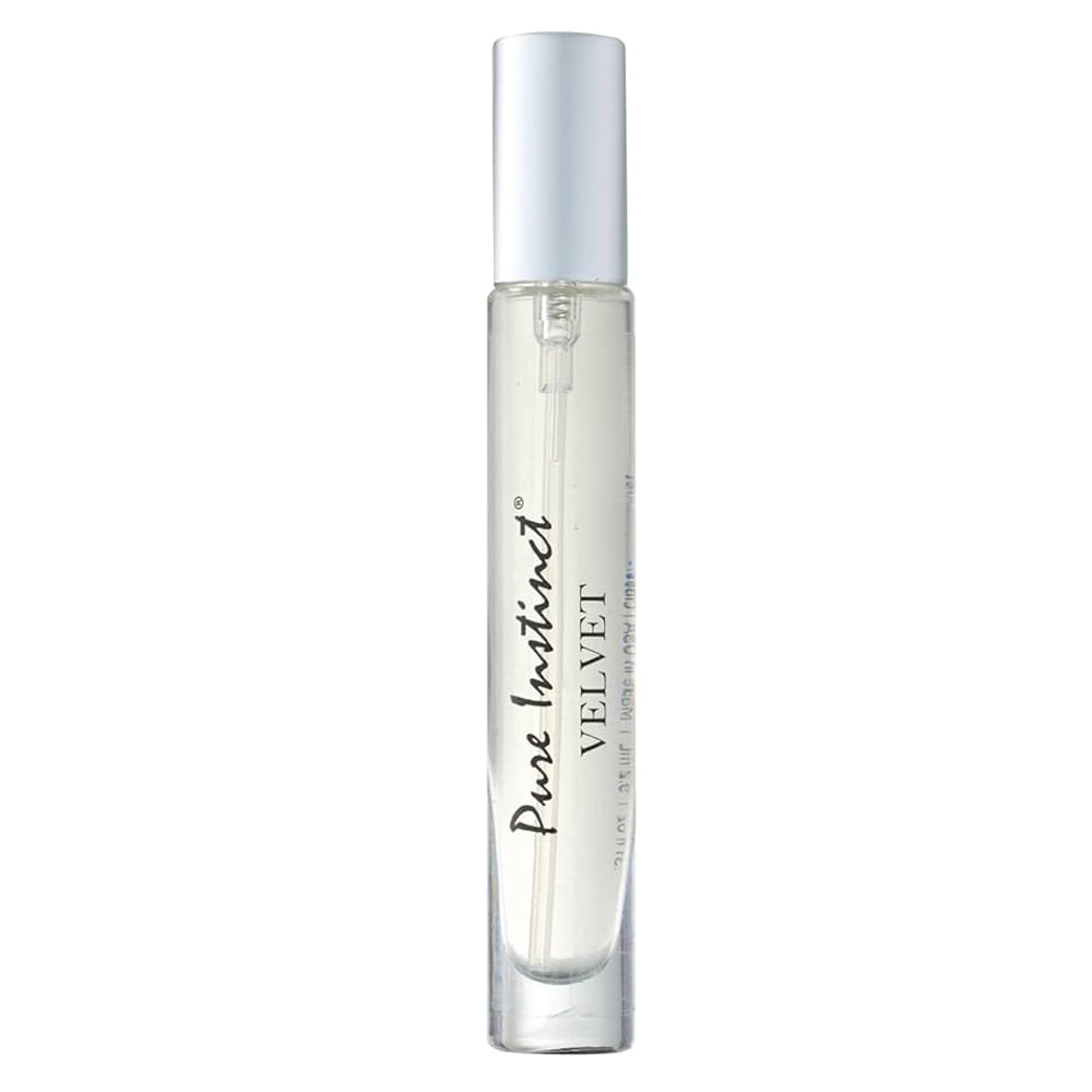 Indulge in the luxurious essence of Pure Instinct Velvet Pheromone Infused Perfume, a fragrance that embodies elegance and seductive charm. Sparkling citrus notes mingle with juicy wild plum, leading to a heart of delicate flowers and a warm, inviting base of tonka, vanilla, and sandalwood. This captivating scent is designed to leave a lasting impression, making it the perfect addition to your intimate collection.
