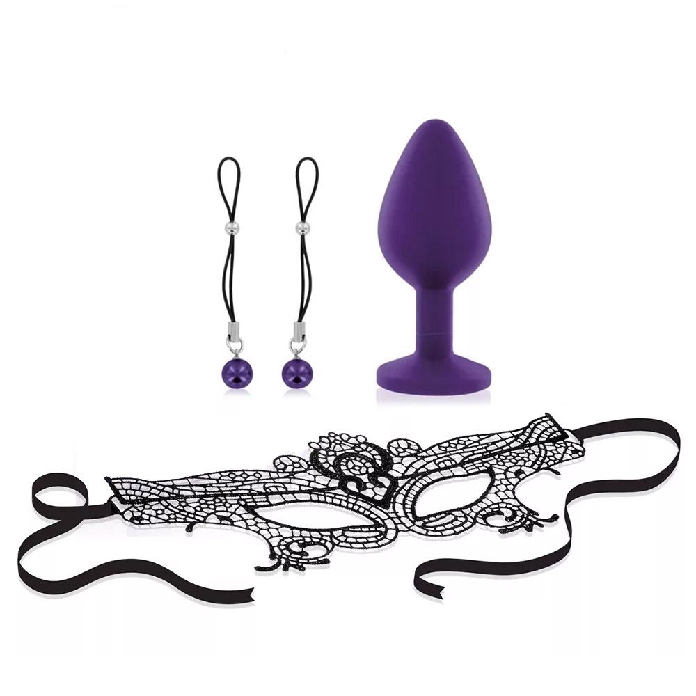 - Elegant Design: A stylish combination of a mask, booty plug, and nipple jewellery to elevate your intimate play.