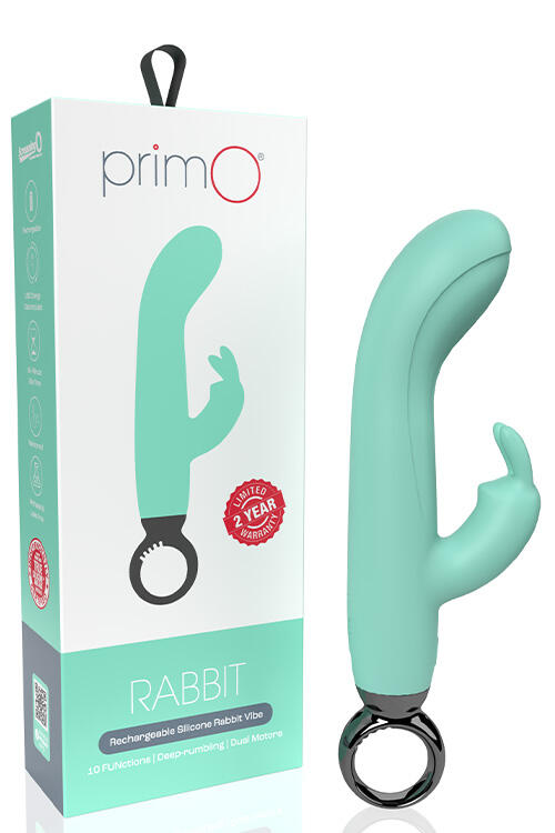 Crafted from silky smooth silicone with an eye on comfortable use, the PrimO Rabbit features 10 vibration functions – 5 speeds and 5 patterns – at the touch of a button, both in the internal arm, and through the flexible rabbit ears on the external clitoral tickler. The vibe itself is carefully ridged to maximise your pleasure, and the internal arm is curved to press up against your G-spot for dual stimulation, while the O-ring handle provides a variety of easy grip options.