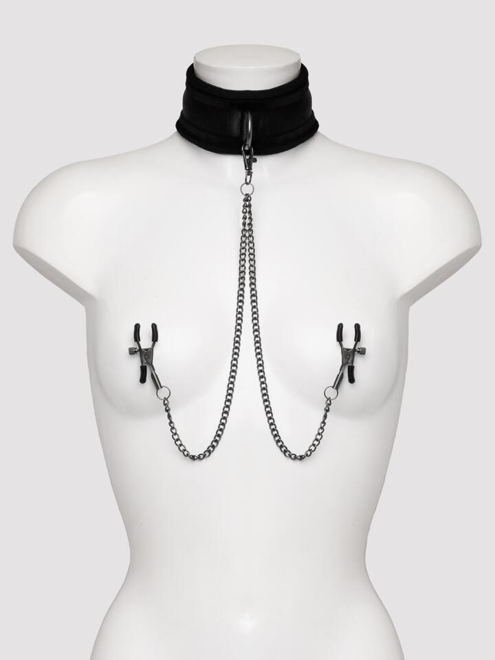 SEI MIO Twin Tweaks Velvet Collar with Nipple Clamps – Black