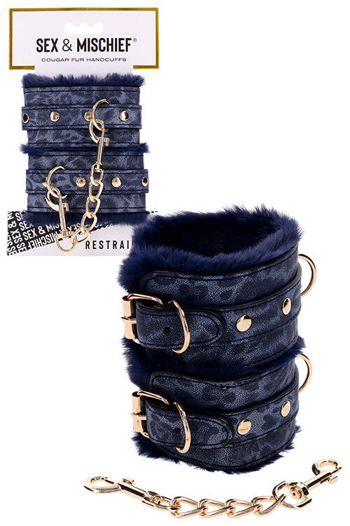 Plush blue faux fur cushions the wrists while gleaming gold hardware adds an elegant touch to your intimate adventures. Perfect for beginners or seasoned explorers, these cuffs deliver secure hold with sensual softness, creating unforgettable moments of connection and control.