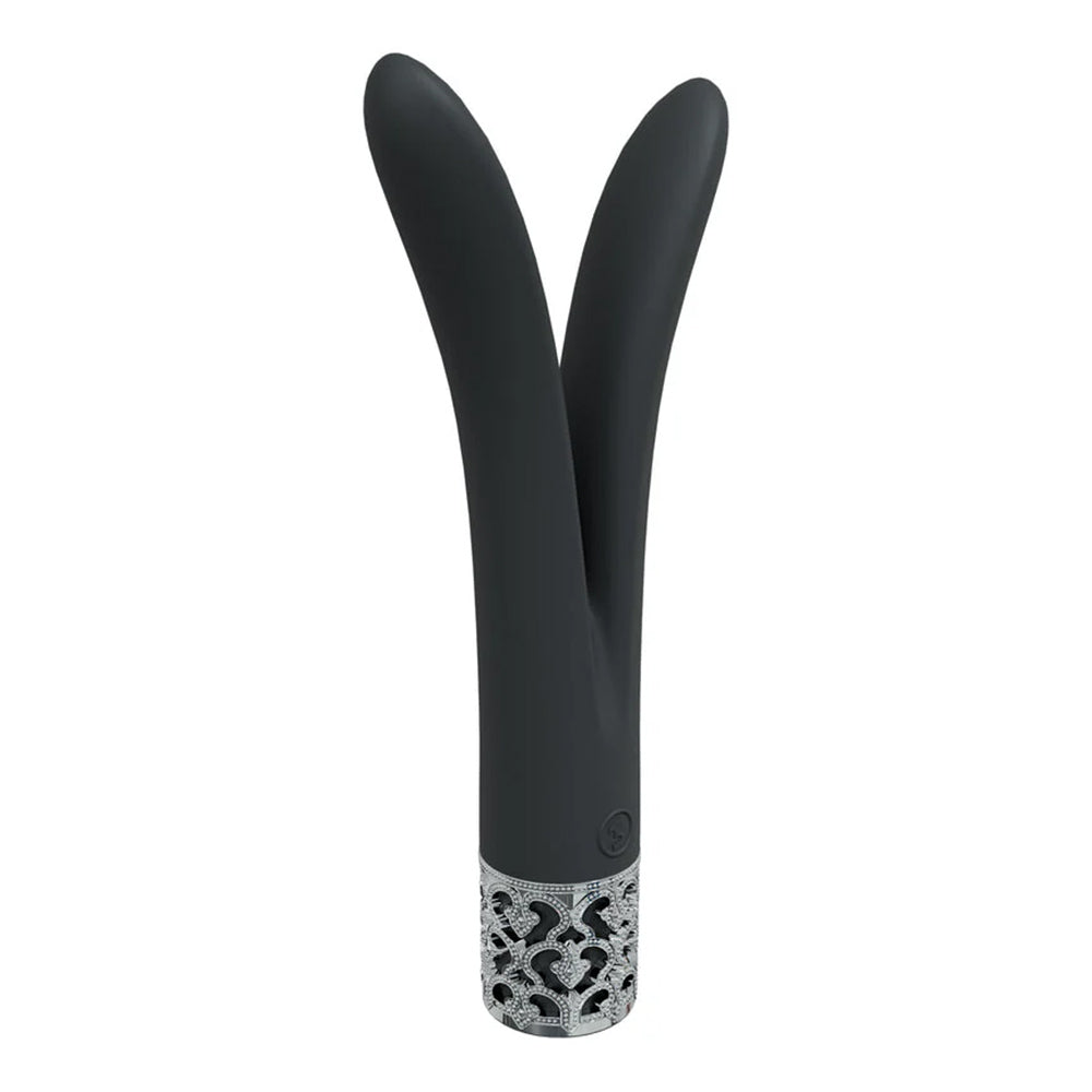 Introducing the Shots Royal Gems Dueling Queens Rechargeable Vibrator, a revolutionary addition to your pleasure collection! This dynamic vibrator features an innovative V-shape design, designed to deliver exhilarating sensations from both ends. With dual motors operating at an impressive 10,000 RPM, you’re guaranteed a spectacular performance every time. Equipped with 10 signature moves and a 9.5cm insertable length, this splashproof and whisper-quiet companion is perfect for discreet enjoyment!