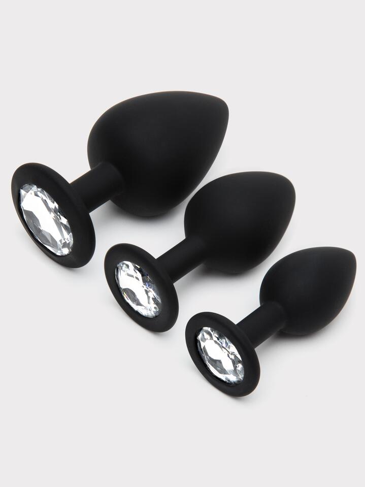 Silicone Jewelled Butt Plug Set (3 Piece) – Black