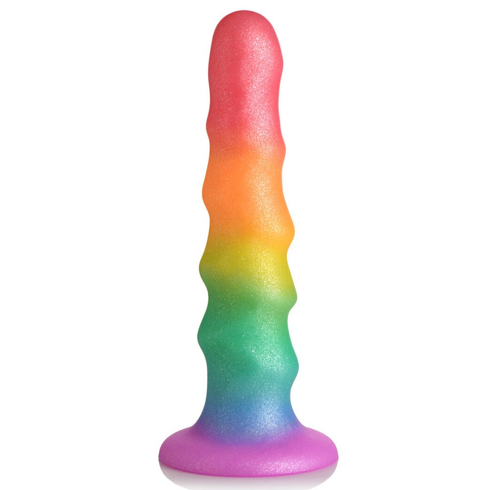 Indulge in a world of color and sensation with the Simply Sweet 6.5-Inch Zigzag Rainbow Dildo. This delightful toy is designed to bring joy to your intimate moments, featuring a super-soft, ribbed texture that elevates pleasure to new heights. Made from premium silicone that shimmers in vibrant hues, it offers a safe and exhilarating experience for all kinds of play.
