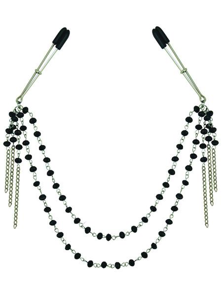 Introducing the Sincerely Midnight Black Jeweled Nipple Clamp, where elegance meets sensuality. Crafted to captivate, these nipple clamps feature a striking strand of black beads that reflect light beautifully, enhancing your intimate experiences. Perfect for both beginners and seasoned enthusiasts, this exquisite accessory adds a touch of glamour to your pleasure play.
