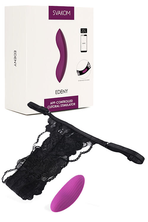 This discreet toy is ergonomically curved to fit to your body, and ribbed to provide delicious stimulation as you grind down against it. The exclusive lace panty fits most bodies and cradles the Edeny lovingly against you while she thrills you with her 11 different vibration functions. Change the vibes discreetly from the Svakom app on your smartphone – or hand control over to your partner for a very memorable date night.