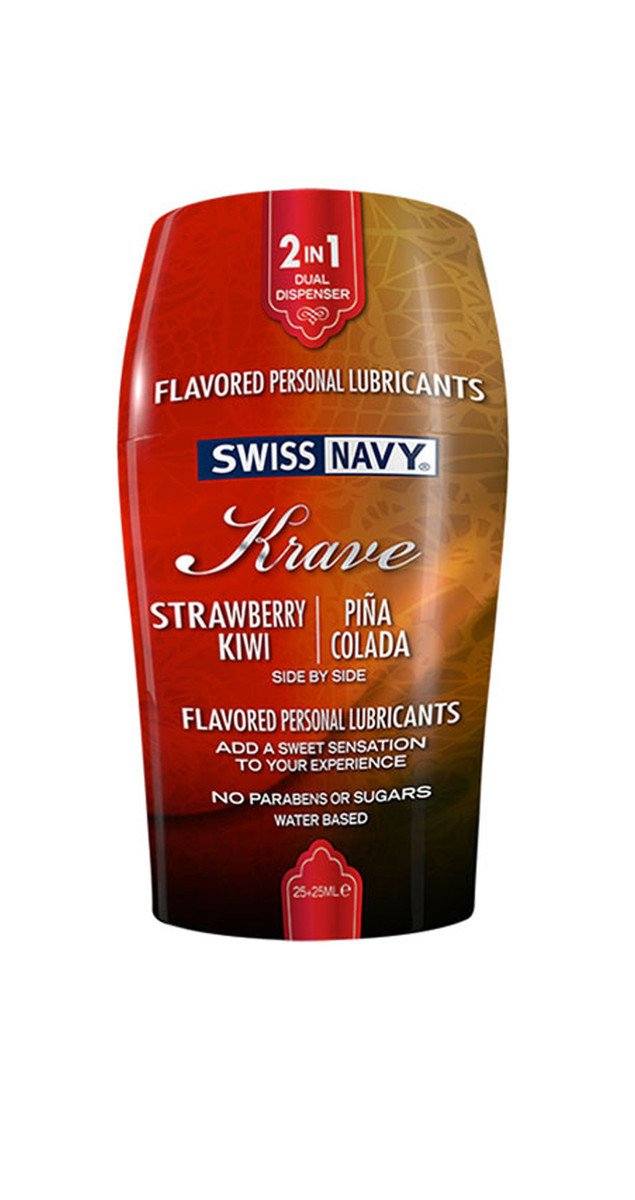 Experience the ultimate pleasure with the Swiss Navy Krave 2-IN-1 50ml. This unique dual dispenser features two mouth-watering flavors: Strawberry Kiwi and Pina Colada. Perfect for adding a delightful twist to your intimate moments, it’s designed to be non-sticky, non-staining, and sugar-free, ensuring that nothing distracts you from the fun!