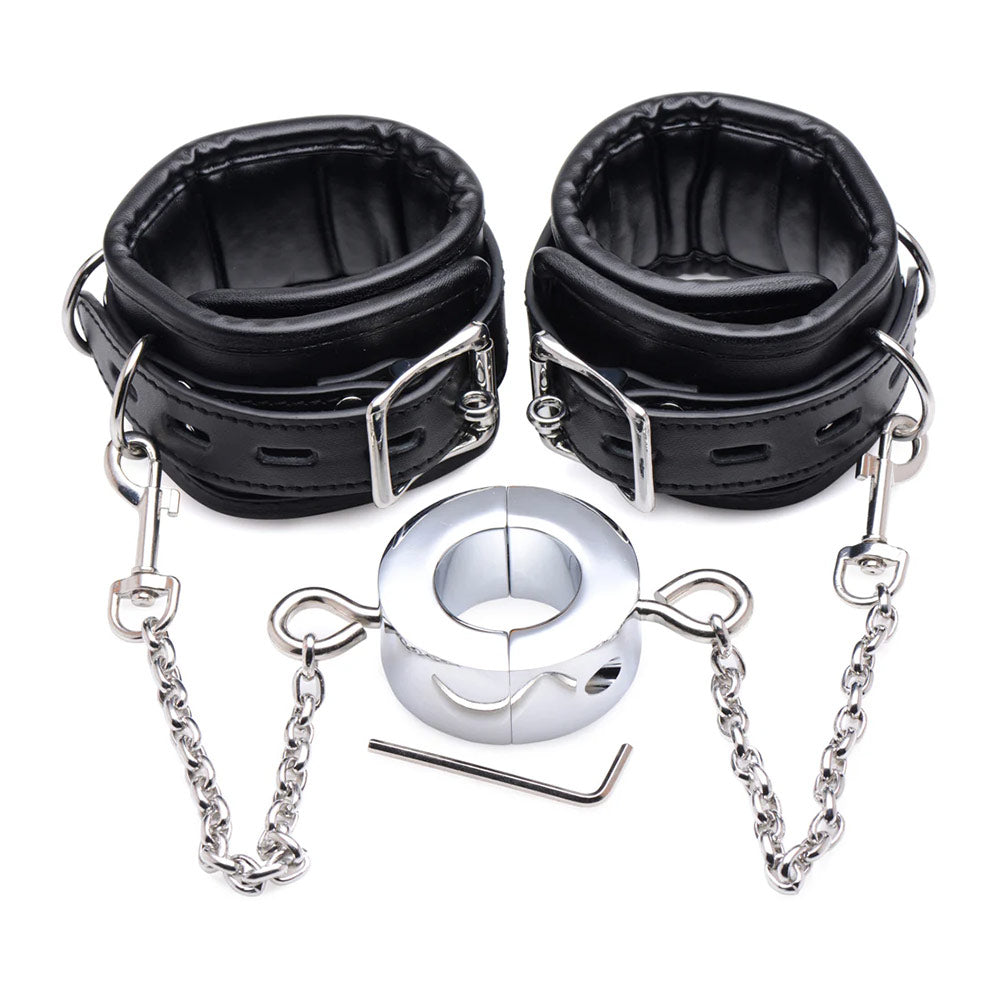 The Triune Hells Tether Ball Stretcher Humbler 12mm X 35mm ID is a commanding restraint designed to limit movement and reinforce control through tension and positioning. Engineered for BDSM enthusiasts who appreciate strict posture play, this humbler connects the weighted metal stretcher to padded ankle cuffs, encouraging a kneeling stance and heightening the sense of restraint.