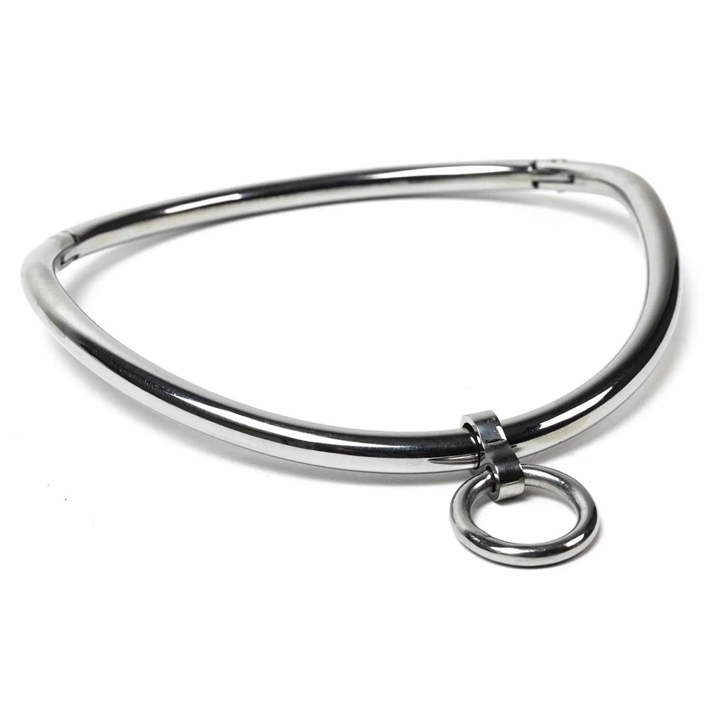 The Triune Teardrop Shaped Stainless Steel Choker is a bold and striking piece of restraint, crafted from solid stainless steel for durability and lasting strength. Measuring 13.5 cm in length and 13cm in width with a thickness of 0.5cm, its teardrop shape contours elegantly around the neck while maintaining a commanding presence.