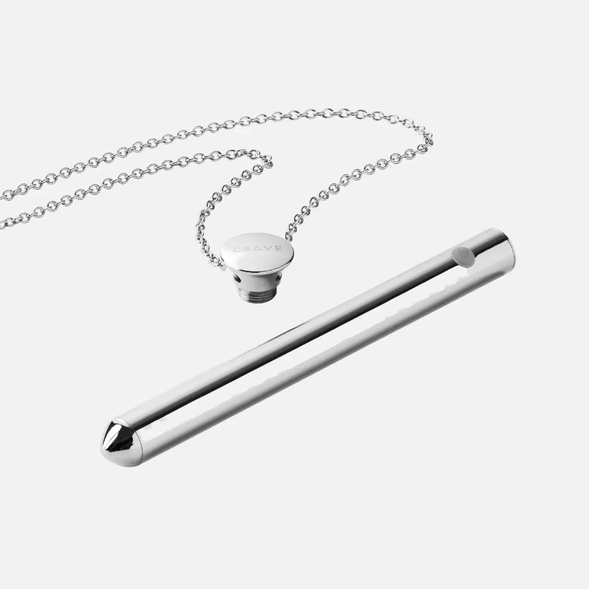 Introducing the Vesper Bullet Vibrator Necklace-Silver – the world’s first vibrator necklace that combines elegance with pleasure. This stunning piece doubles as a beautiful accessory and a powerful personal massager, making it the perfect addition to any jewelry collection.