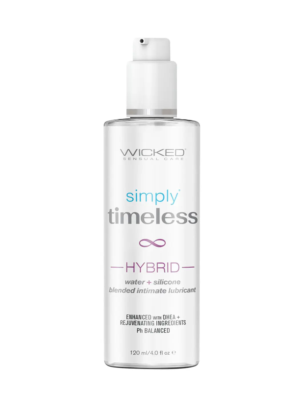 Elevate your intimate experience with Wicked Simply Timeless Hybrid Lubricant, expertly crafted to meet the unique needs of individuals during perimenopause, menopause, and beyond. This luxurious lubricant combines the best of water-based and silicone formulas, infused with nourishing ingredients like Vitamin E, olive leaf extract, and squalane to relieve dryness while enhancing pleasure. Free from harmful additives, it provides a soothing and satisfying experience that can also be used as a daily vaginal moisturizer.