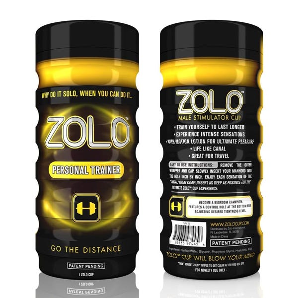 Designed to go the distance, this personal trainer masturbator cup from the Zolo collection will turn you into a solo champion. The ergonomically designed outer cup allows for excellent grip in the palm of your hand, while the real-feel nodule inner chamber is made from a soft and cushioning material that warms to the touch. With a control hole on the bottom, you can adjust the tightness to your desired level.
